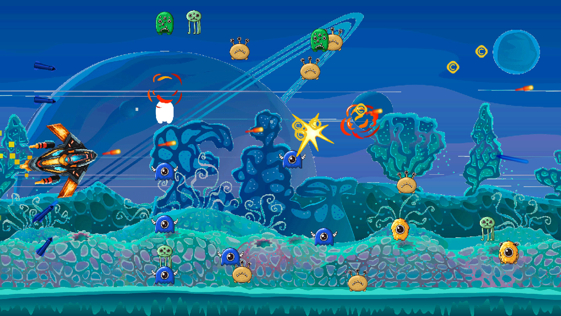 Buckle up and blast off for an epic adventure in Invaders Defender! This exhilarating space shooter puts your skills to the test as you fight through waves of enemies across four unique planets.